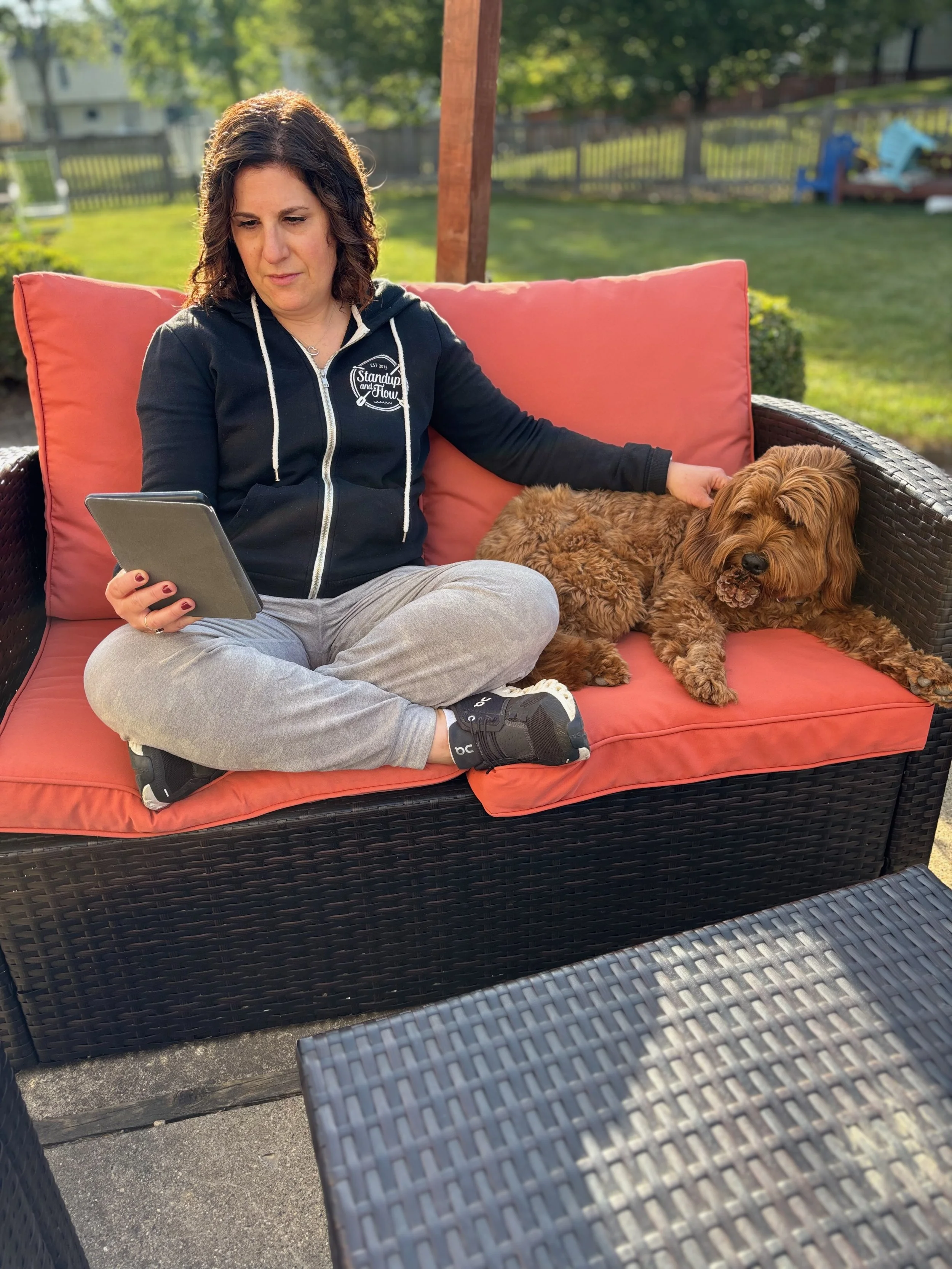 Reading outside with Bailey